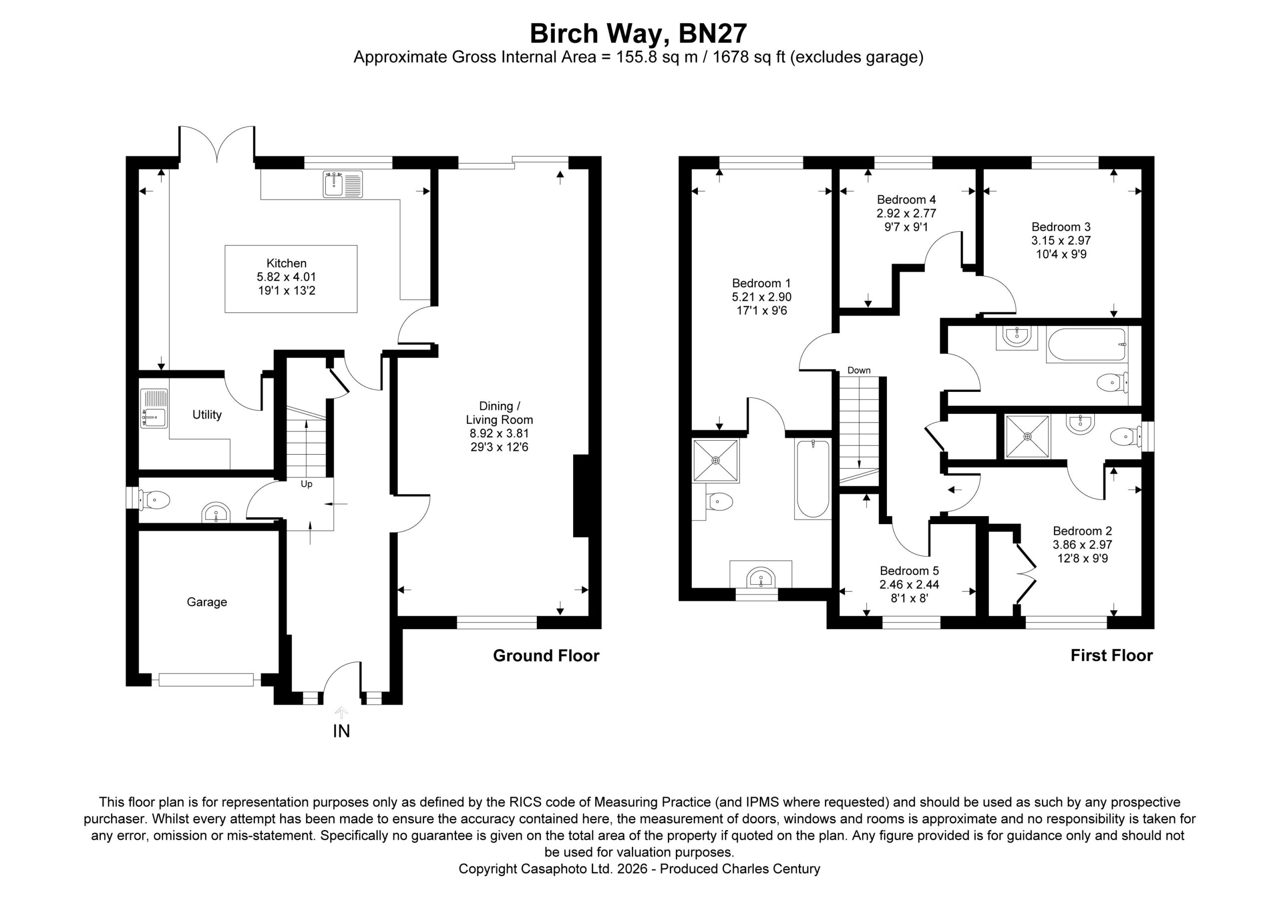 Price Range £525,000 to £575,000 An exceptional five-bedroom (3 bath/ shower room) detached house presents a rare opportunity to acquire a beautifully designed family home, thoughtfully finished to an impeccable standard throughout in a highly desirable location. Upon entering the property, you are welcomed by a generous hallway that leads into the expansive open-plan sitting and dining room which is flooded with natural light from large patio doors, which offer seamless access to the rear terrace. A stunning kitchen, featuring a substantial central island, premium integrated appliances, and double doors opening onto the rear garden, creating a perfect setting for modern family living. A separate utility room and a convenient modern downstairs W/C add further practicality. Upstairs, the luxurious principal bedroom boasts a contemporary en-suite shower and bathroom. Four additional well-proportioned bedrooms and additional en-suite shower room provide versatile accommodation for family members or guests and family bathroom. The private driveway offers ample parking for numerous cars with integral garage, while the fully landscaped rear garden features elegant seating areas, perfect for alfresco dining and relaxation.
